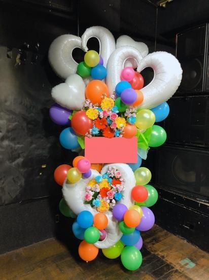 カラフルなバルーンで仕上げた華やかなバルーンスタンドです。